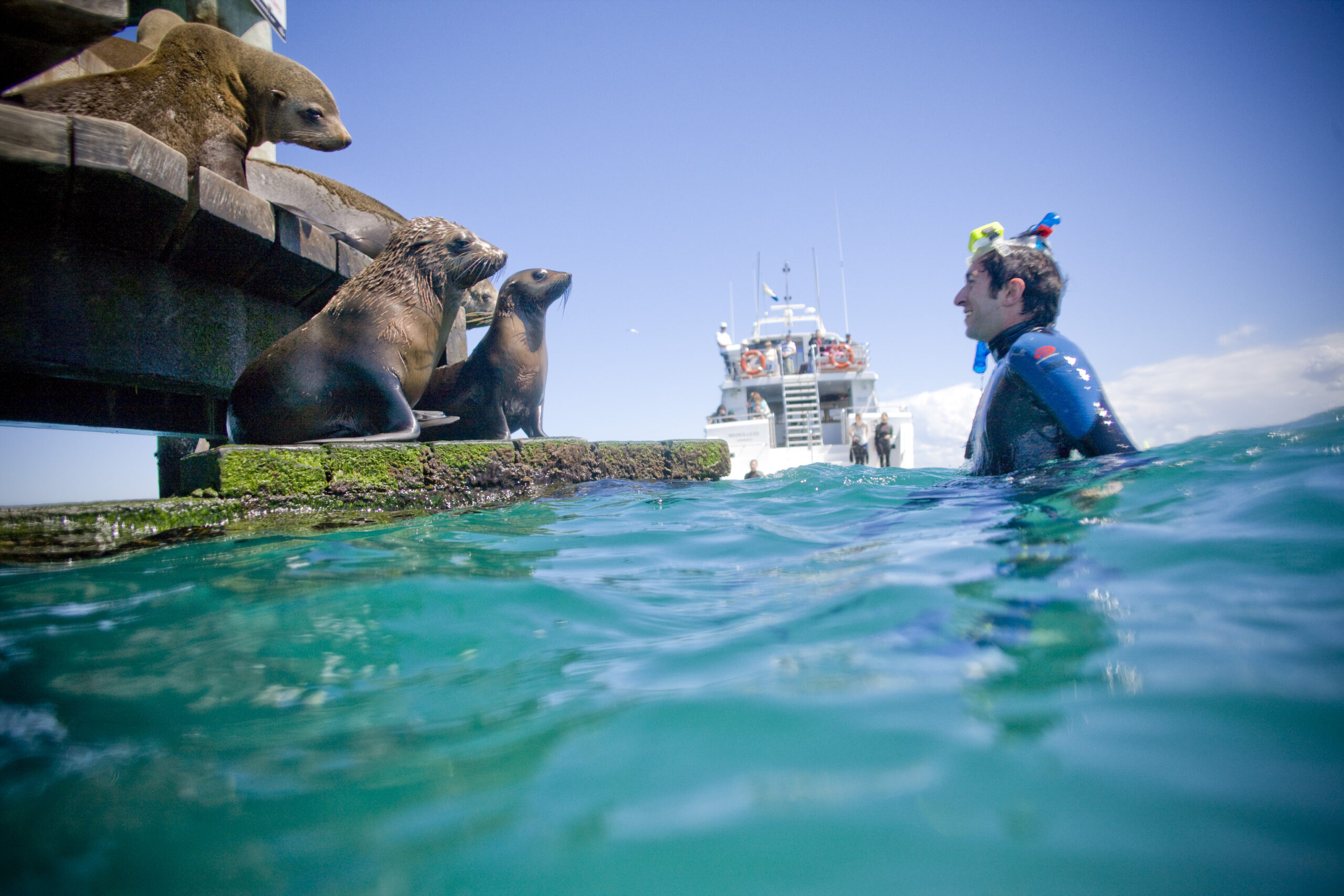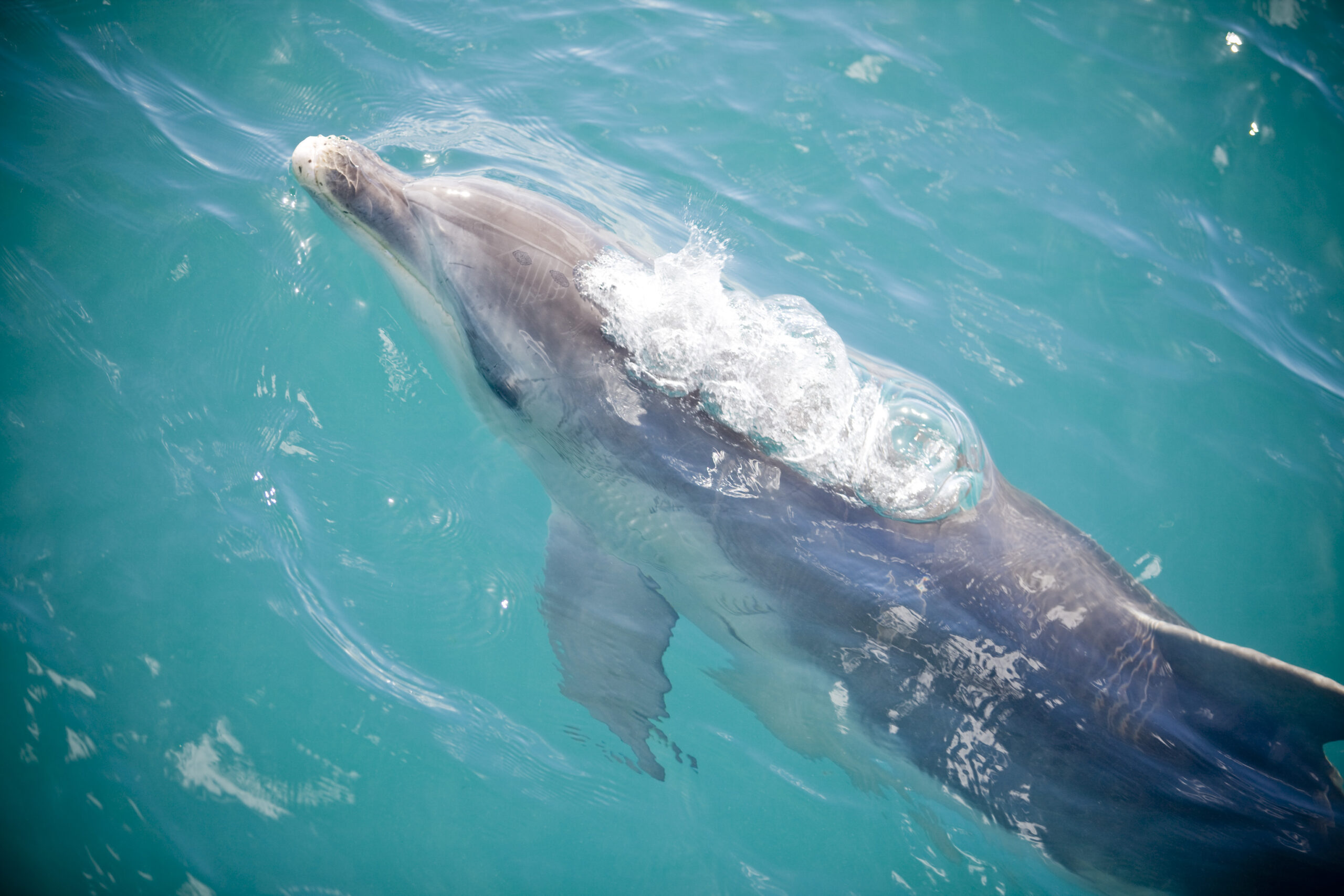 The dolphins are located we ready into groups of 10 people and prepare to enter the water, floating on the waters surface your guides will try to entice the dolphins to spend time with our group, where they swim beneath you and often circle swimmers looking at you and showing off their amazing abilities. Every swim is unique and the time we spend with the dolphins varies. It must be appreciated that they are completely wild and the interactions are on the animals’ terms. We advise you to understand there are not guarantees or refunds, if we do not see dolphins on your tour you are welcome to come back for free within 30 days.