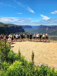 After everyone shuffles on the minibus we have an hour drive through some tunnels, motorways and western Sydney on our way to the Blue Mountains. Spend this hour to connect with your seat neighbours, chill out to the bus playlist or feeling a little tired then grab a bit of sleep.